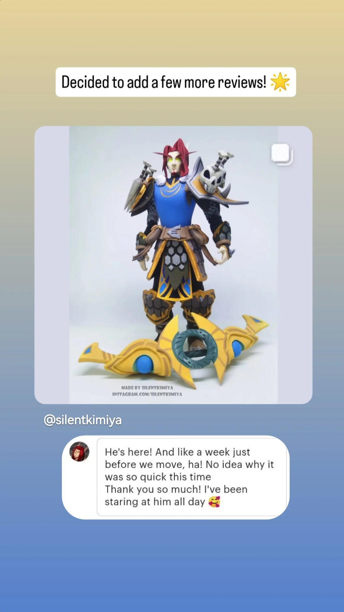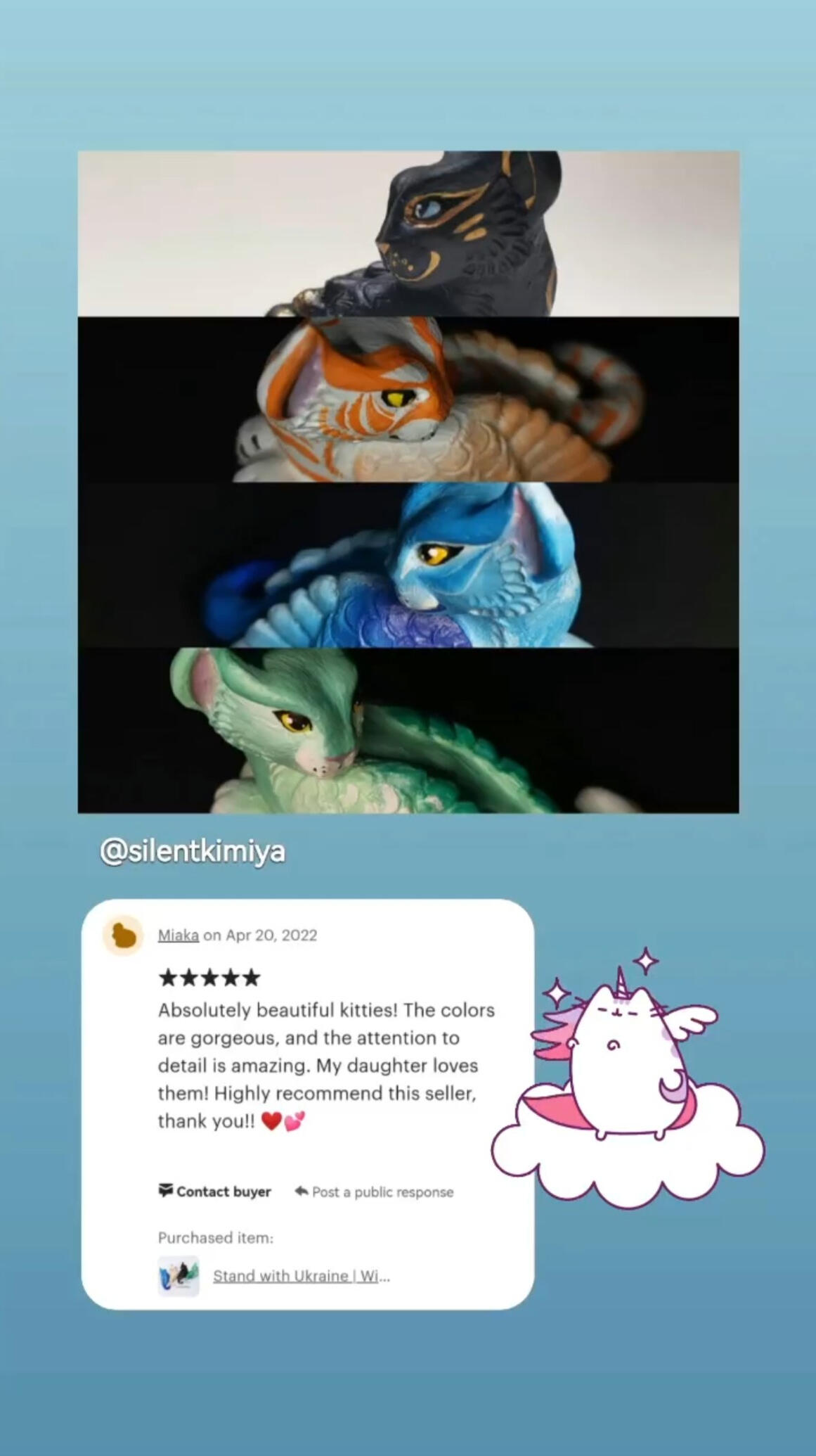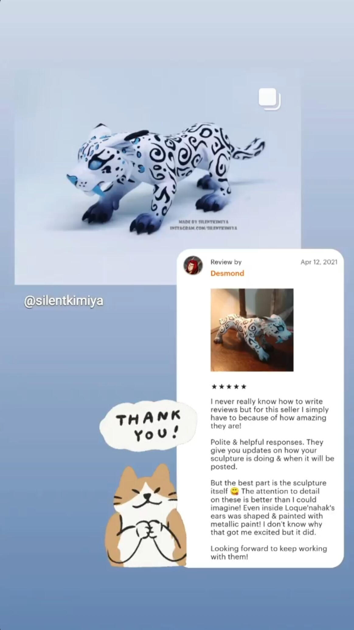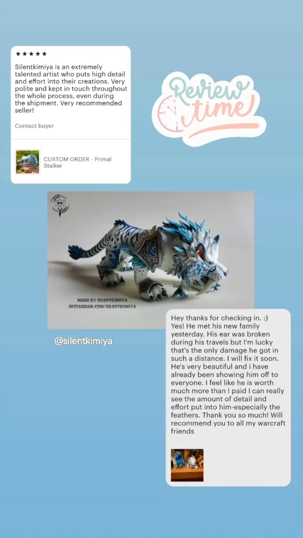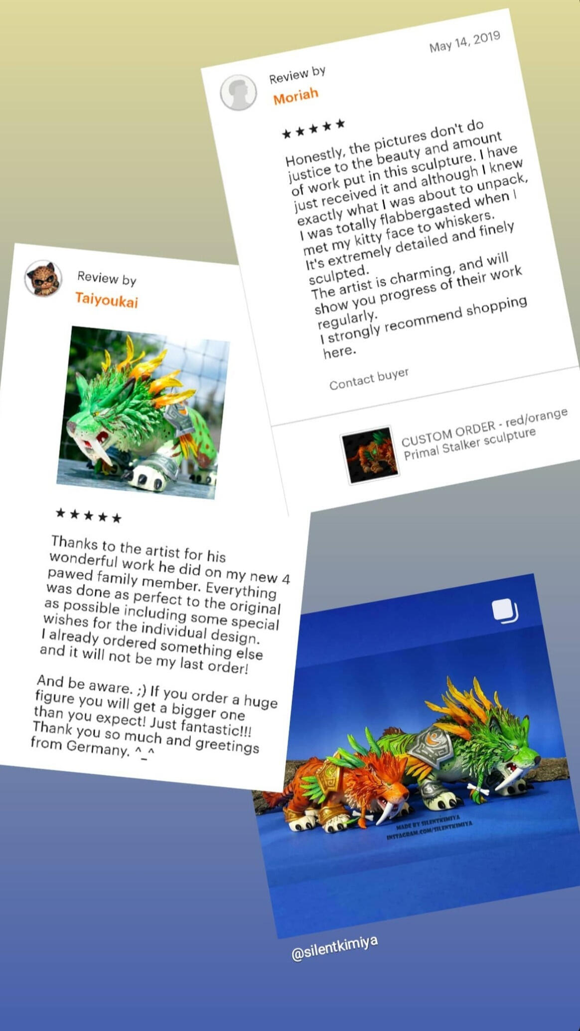 Reviews are very important part of my work.As a professional, I need to be sure that the work was done well and that it meets customer's expectations - or exceeds them. Reviews also help new-come customers to choose if they want to work with me or not.And for sure reviews mean a lot to me personally.I remember every sculpture that I've created, and I put my soul into every creature that I bring to life. Knowing that the sculpture arrived to its new home and that its owner loved it makes me super happy every time.