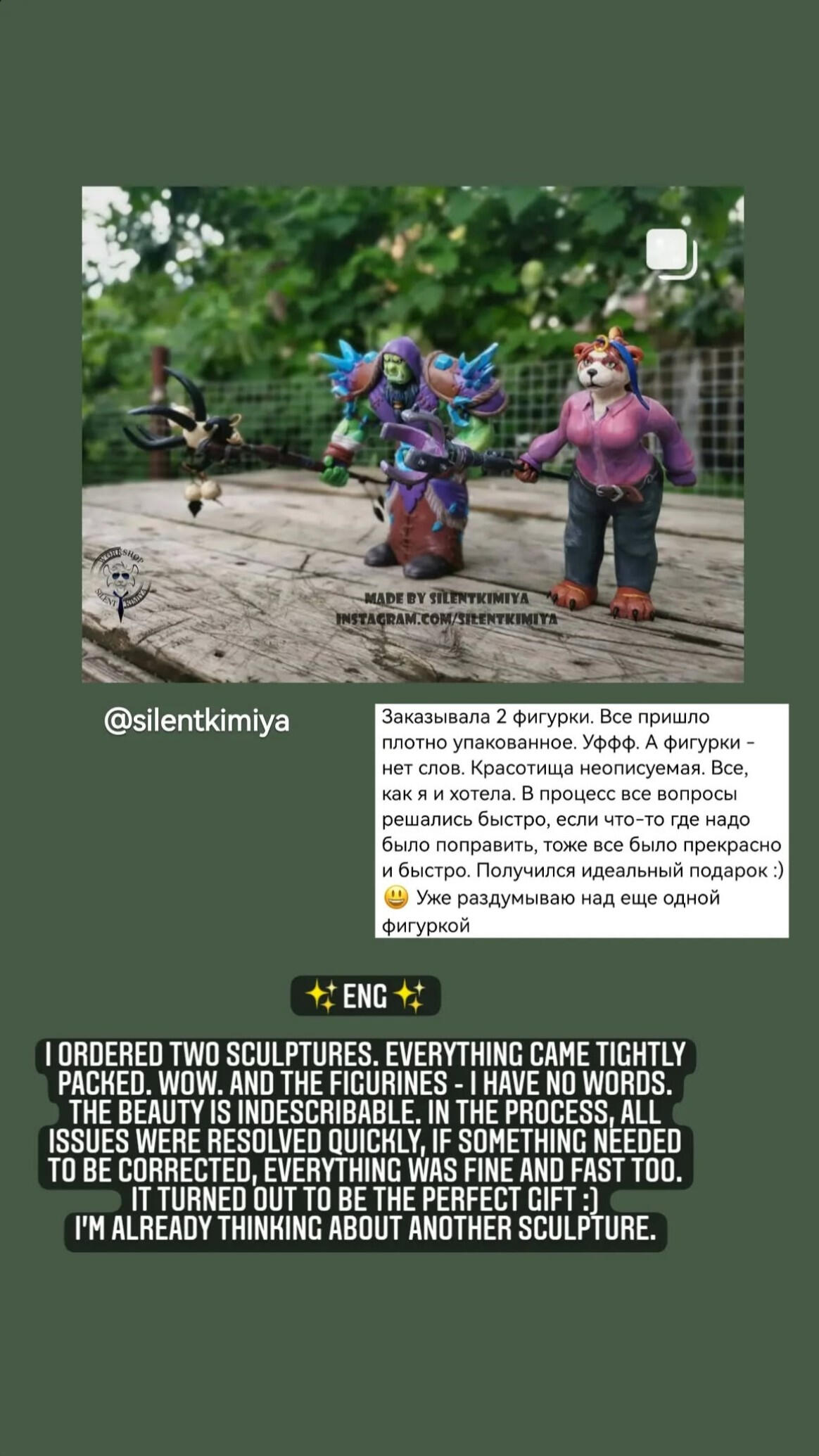 I am SilentKimiya, an artist who creates handmade sculptures of different levels of complexity. If you are interested in made-to-order projects, you can visit this page.