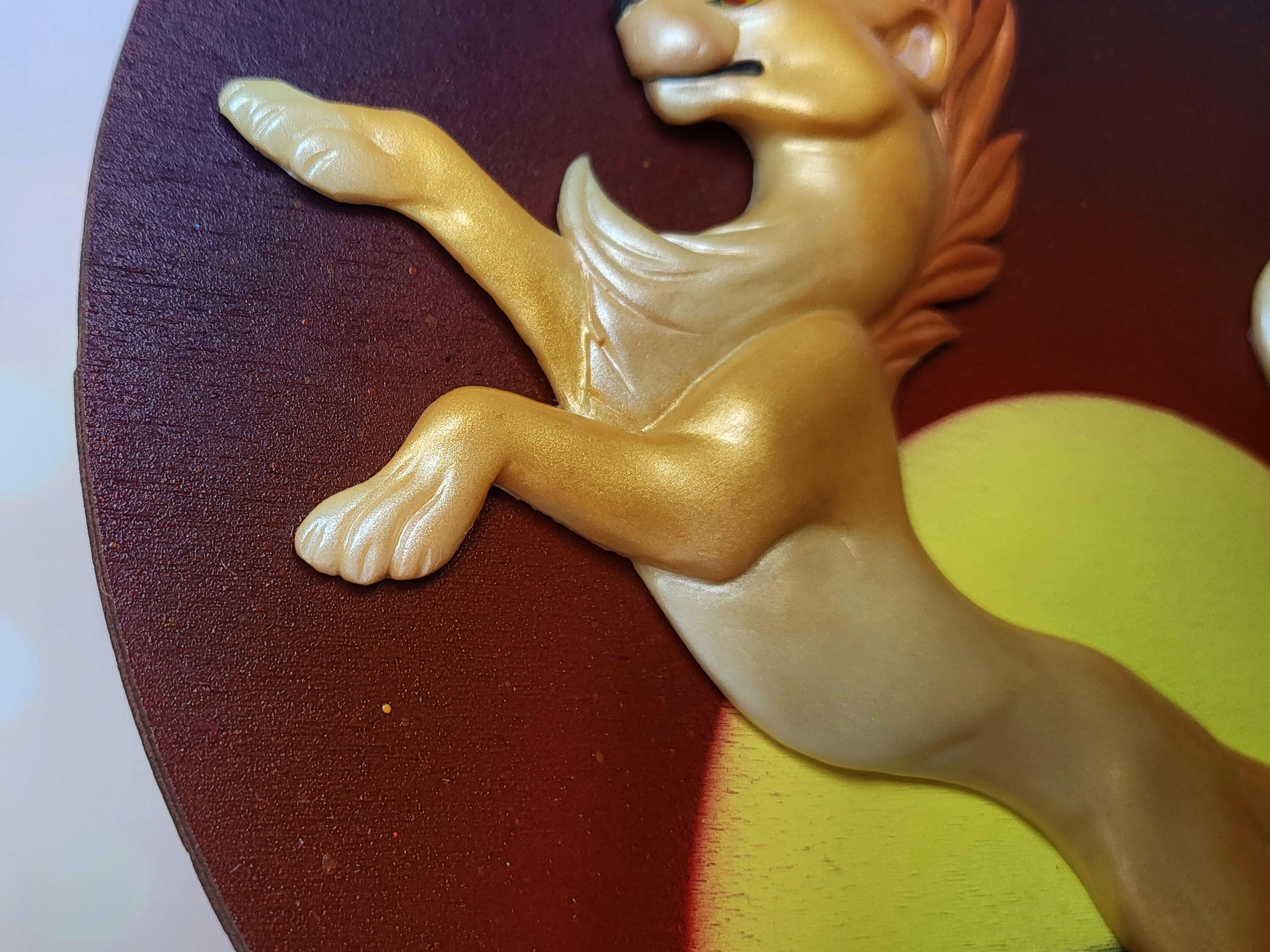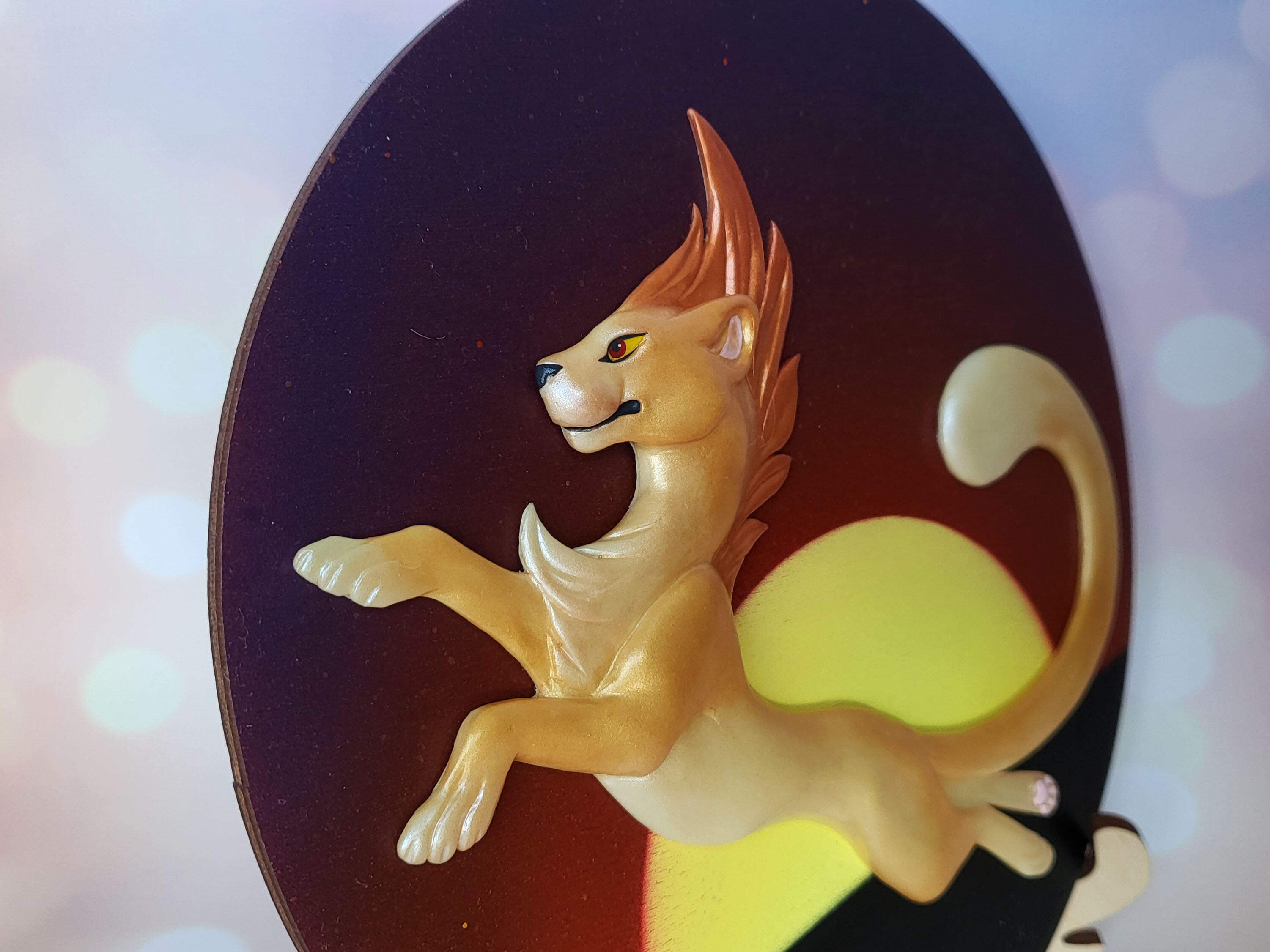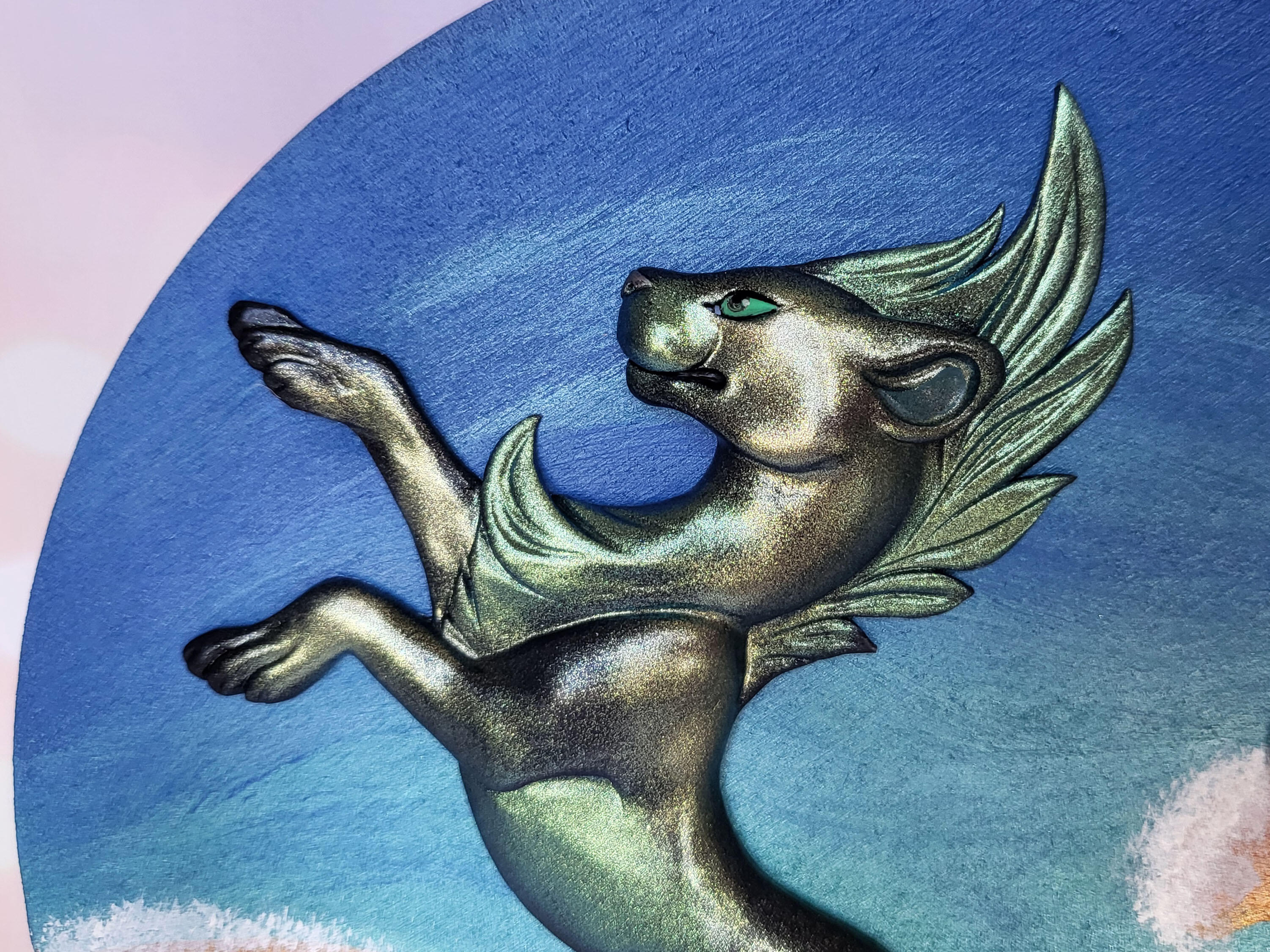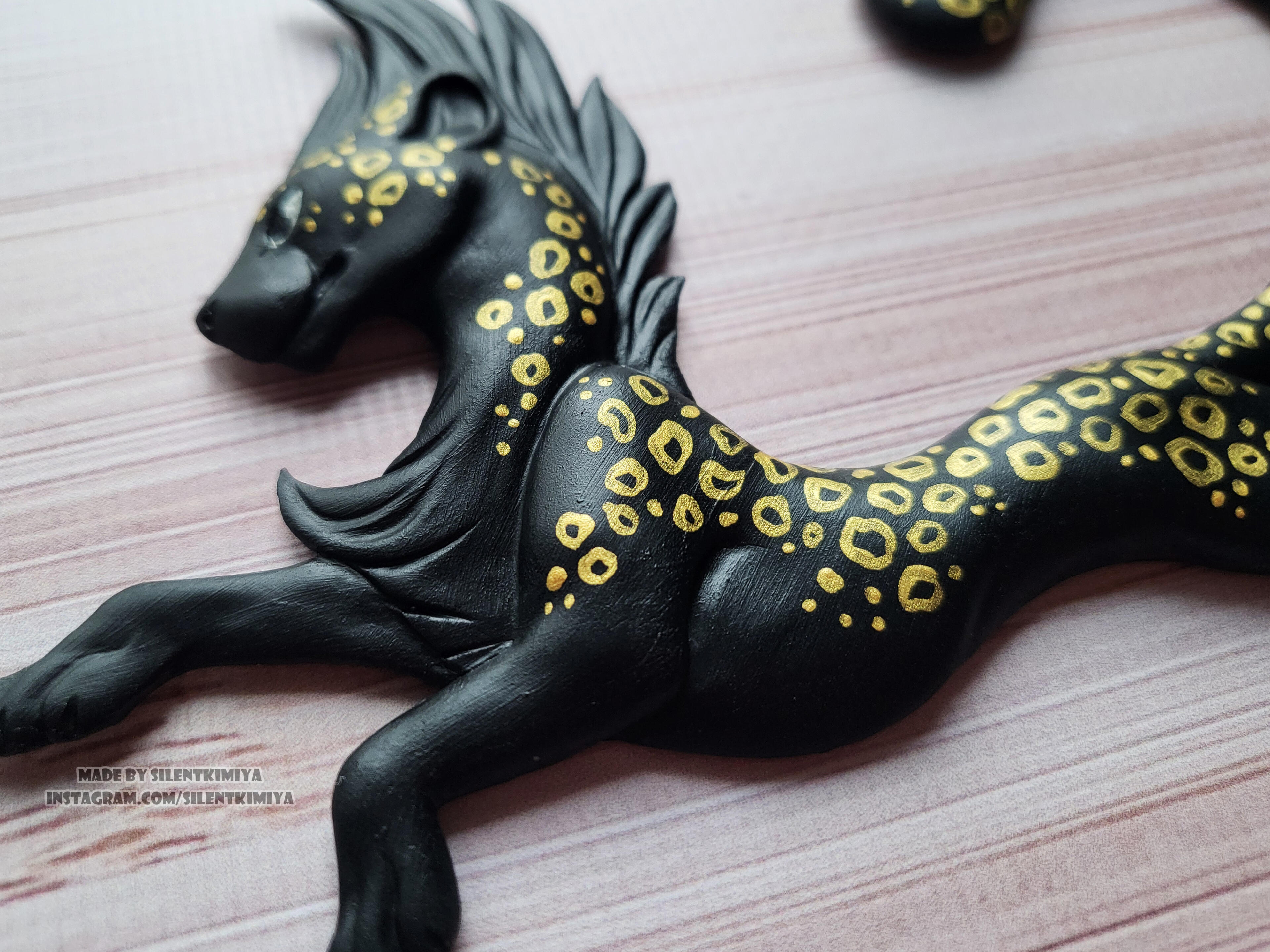A graceful bas-relief of a jumping feline, created to bring an inspiration and an atmosphere into your space. The wooden base is hand-painted with acrylics, while the jumping figure is hand-sculpted and cast by me. Each piece from The Jumping Cats series is one of a kind, carrying its own meaning and story. At the moment, two pieces are available: one jumping against a rising sun, and one jumping against a wave.The artwork comes with its own wooden stand. Dimensions: 17 × 17 cm (6.7 × 6.7 inches).Price per piece: 35 USD + shipping (15 USD or free shipping if shipped with another item).