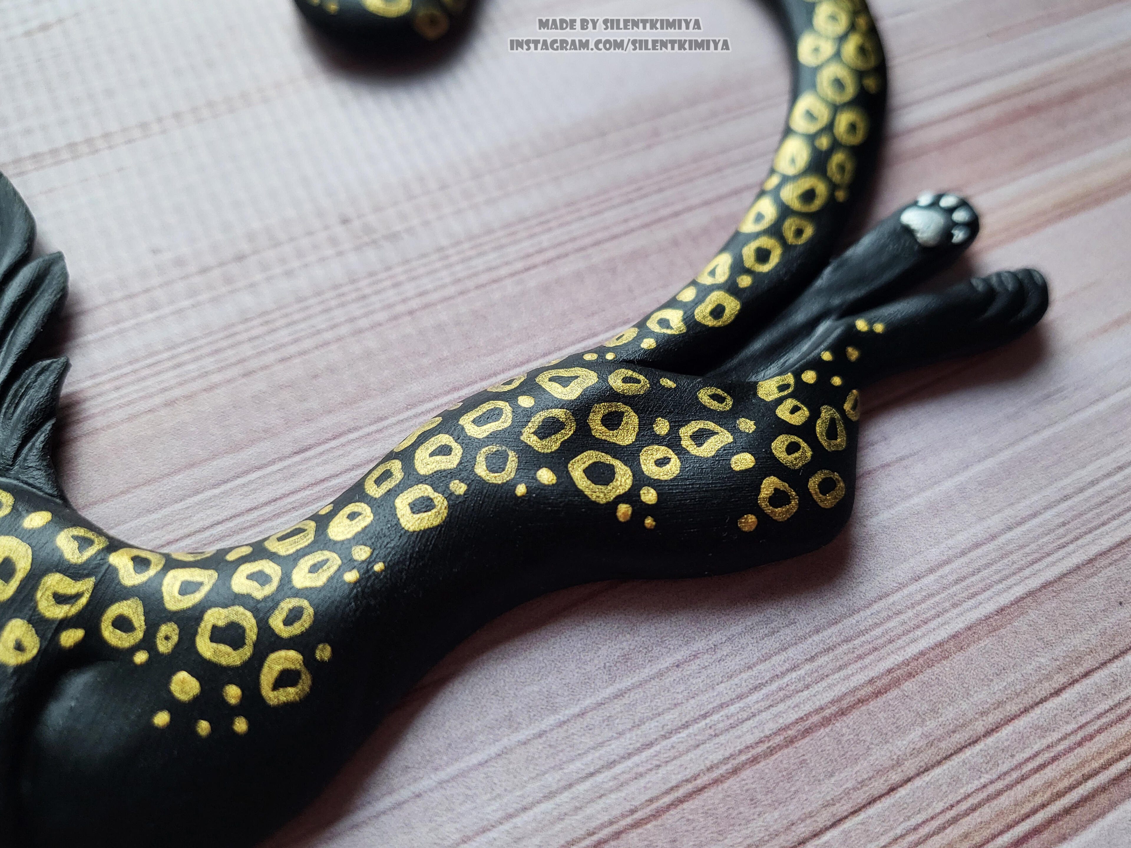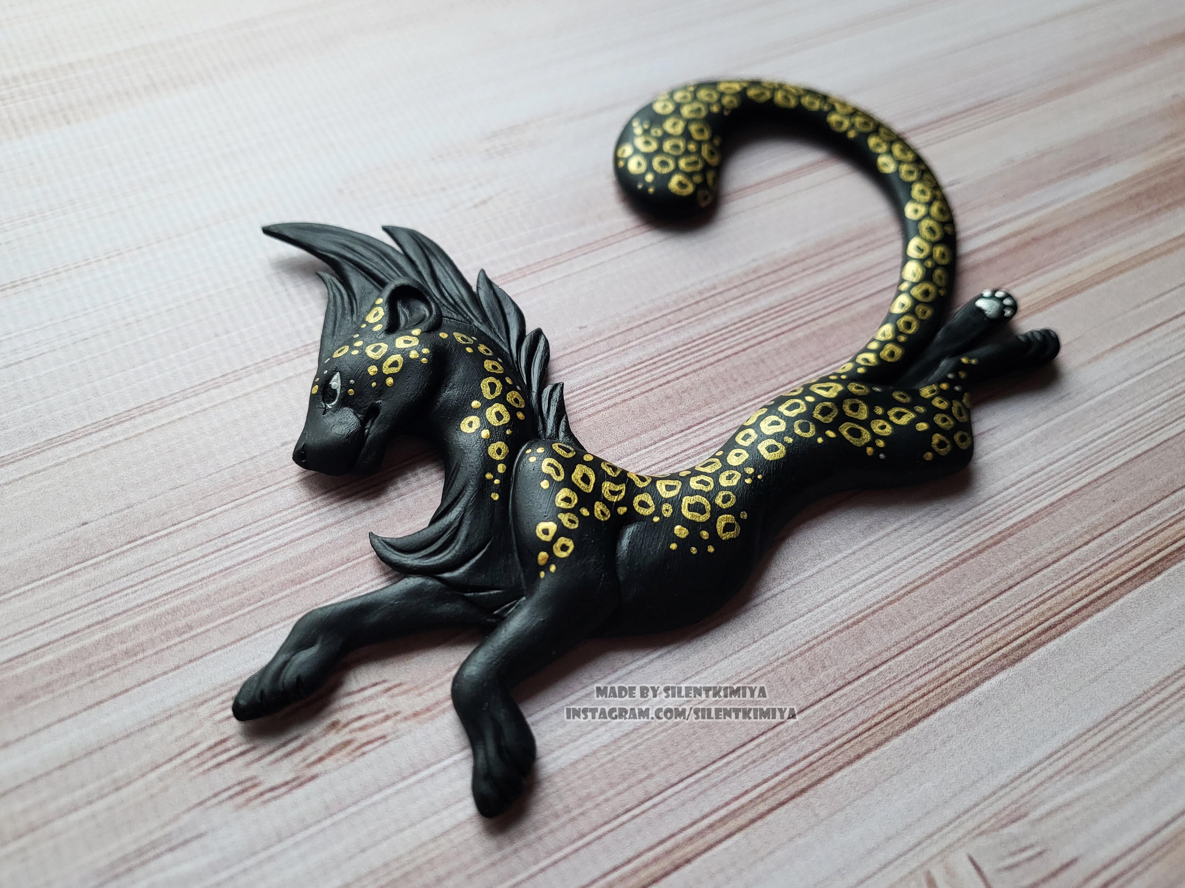 This cat was born in darkness - quite literally: it found its colors during prolonged power outages in Ukraine. Yet despite that, the cat embodies in its coat both the surrounding darkness and the golden glimmers of hope.A polyurethane cast made from my original master model, hand-painted with acrylics and finished with a protective matte varnish. Handmade, one of a kind.Dimensions: 15 cm = 5.9 inches long.