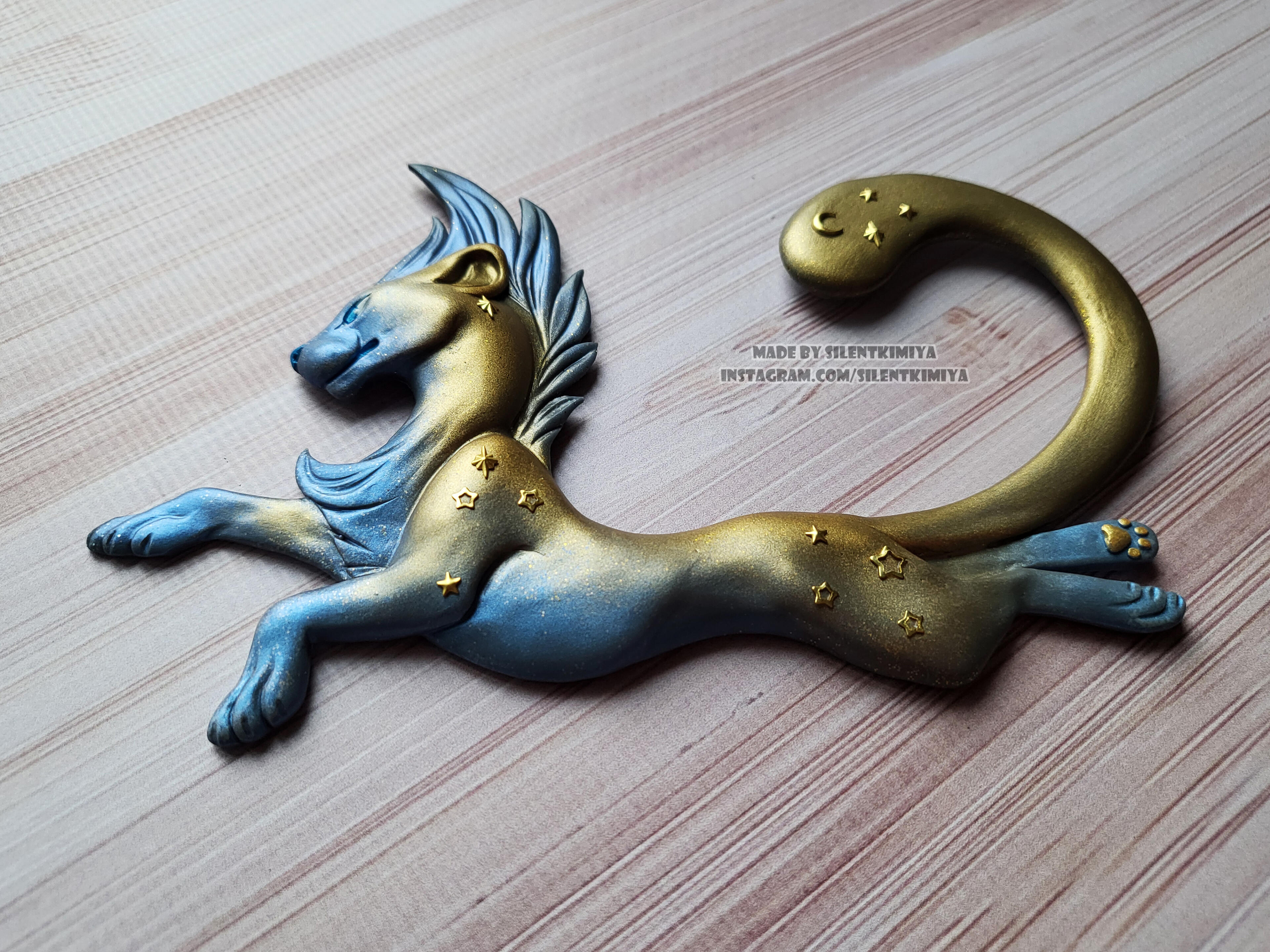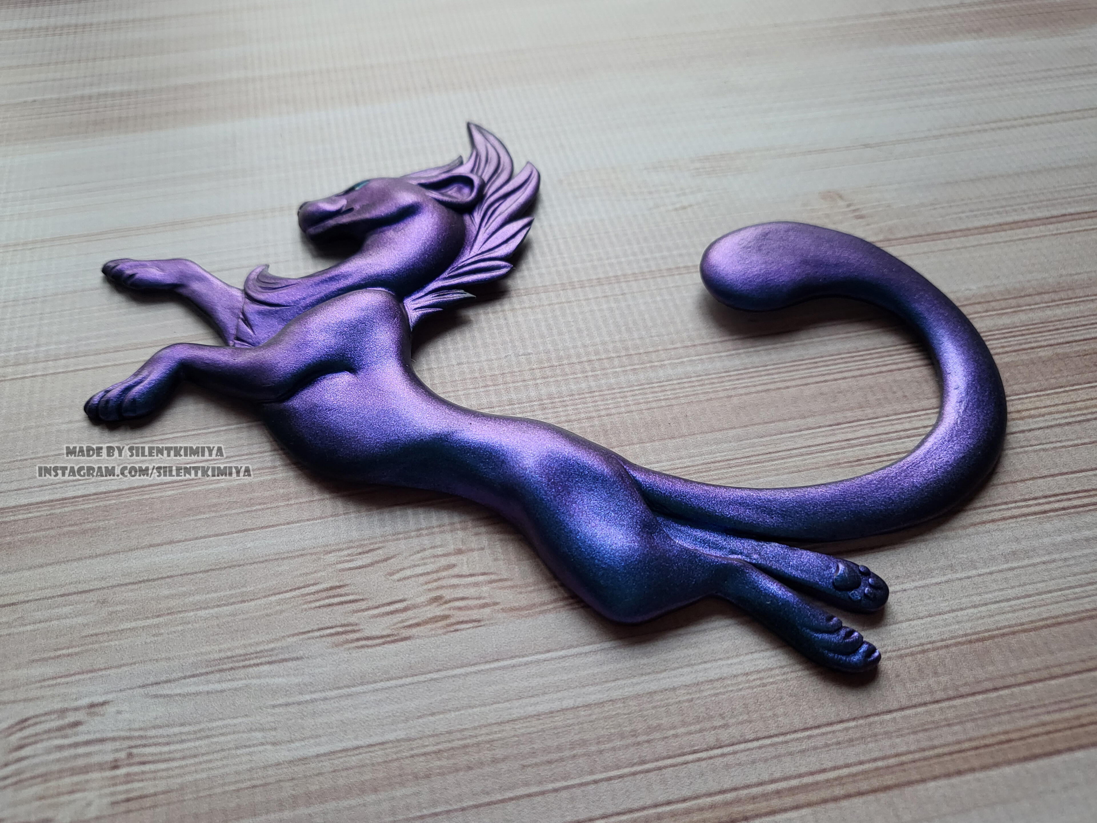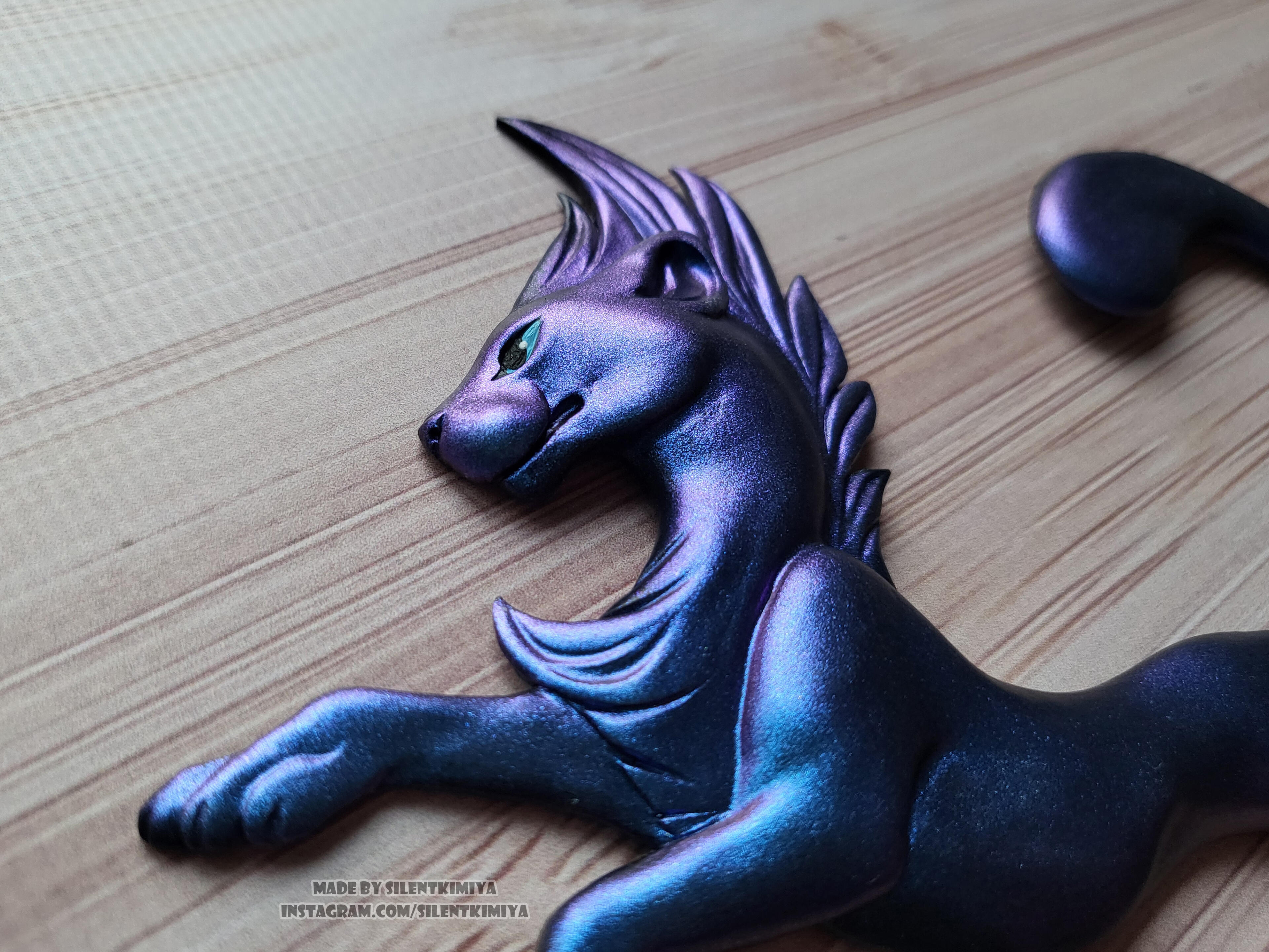 Blue or violet? It all depends on how this cat chooses to reveal itself to you. Cat's chameleon-like coat allows it to transform the appearance - everything depends on the angle from which you look at it.A polyurethane cast made from my original master model, hand-painted with acrylics and finished with a protective matte varnish. Handmade, one of a kind.Dimensions: 15 cm = 5.9 inches long.